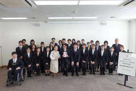 KONAN未来サポーターズ寄付金優秀者奨励金は、優秀な学業成績を修め、貸与奨学金を受給する卒業予定の学生に対して給付するもので、このたび35名の方が採用されました。