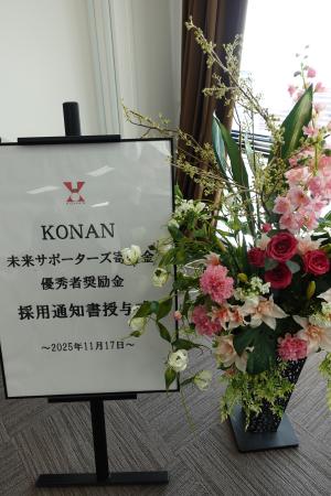 2025年11月17日に「KONAN未来サポーターズ寄付金優秀者奨励金」授与式を開催しました。