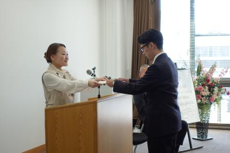 受給者の代表謝辞では、募金してくださったサポーターの方々への感謝と、学生生活の取り組みが認められた喜びの気持ちが述べられました。