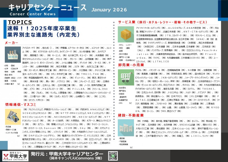 キャリアセンターニュースでは、就活TOPICSやキャリアセンターからのお知らせ、イベント情報を発信します。