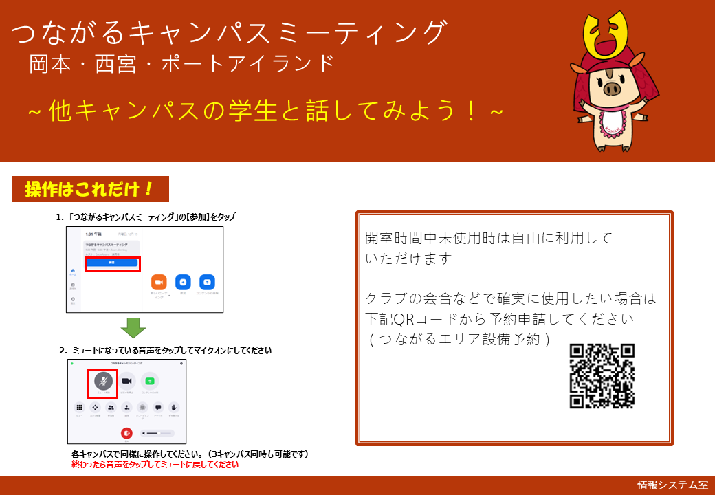 Web会議ソリューション「PolyStudio」は、西宮キャンパス、ポートアイランドキャンパスにも設置されており、526 SMART LOUNGEと3拠点を常時接続して「つながるキャンパス」として活用しています。